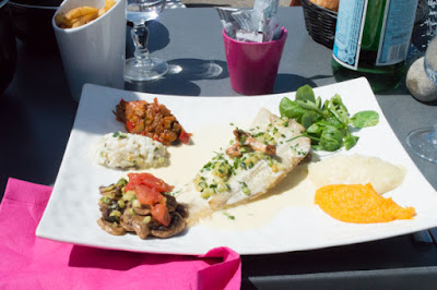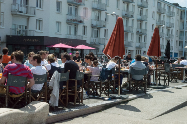 We started in Fécamp, the northernmost town in our plans for this year. If you want to locate it on your map, it’s just northeast along the English Channel coast from Le Havre, which is at the mouth of the Seine river. We arrived just in time for lunch (wow, who knew–food!) at La Suite, one of many beach-side restaurants that offered really nice menus at surprisingly reasonable prices.