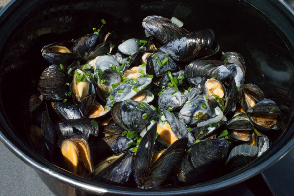 I had the dish I’d been looking forward to for weeks: mussels. That’s probably a more common food in Normandy than chicken is in New Mexico. They remind me of something I once heard about celery–that the energy it takes to eat it exceeds the calorie count consumed. But unlike celery, these were scrumptious!