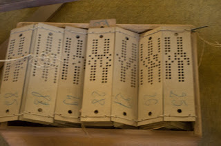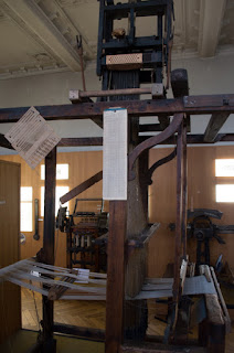 I mentioned that Louviers was for many years a textile center. The museum houses a permanent exhibit honoring that history, including among other exhibits, a Jacquard loom. I had to mention that because every semester I emphasize to my students the importance of the Jacquard loom to the history of electronic computing, because Jacquard invented the punched card to control his loom: