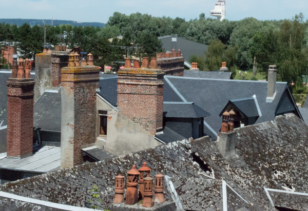 Much less geometric, and in a way an indicator of the French way of putting an artistic touch into as much of their lives as possible, these are chimney pots in Honfleur.