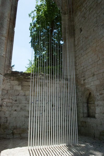 At the ruins of Jumiéges was this remarkable set of new chimes. There are 24 tapered carbon fiber rods, about 15 feet high with a matching set suspended above them, each marked with a blue dot. They are played to mark the canonical hours according to Benedictine tradition.
