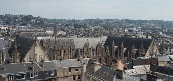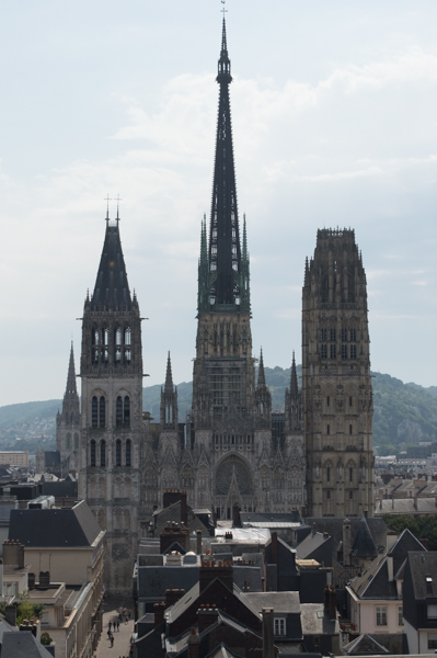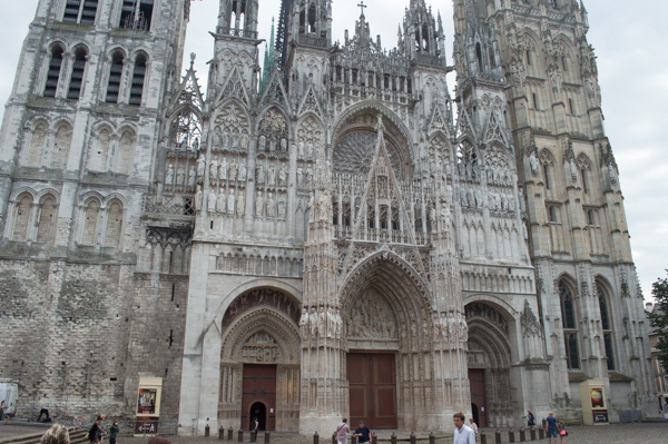I need to start with a bit of an apology. This trip was (and is) about the impressionists, and I expected to include a lot of photographs of impressionist art. But the museums seem to (almost) all have “no cameras” signage, and I can attest that they take that seriously. So we’re doing our best instead to go where the impressionists went to “do their thing.” And one such place is Rouen (pronounced Roo-Awn). If you’ve read Madame Bovary, the name should sound familiar. It’s the second most populous city in Normandy, just behind the major port city Le Havre. And it’s where Monet set up shop for two years to study light, about which more below.