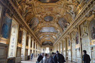 The first time we visited the Louvre, we had one of those great tickets–all the museums you could squeeze into three days in the middle of high tourist season. It really is a great deal for the first-time visitor. But for us, one of the results was having about an hour or so at the Louvre in July. Analogies are hard to come by here, but that’s kind of like getting just one of those little taster spoons and saying you have a good idea of what Baskin & Robbins has to offer. Yesterday we took a different approach–four hours on the first floor of the Richelieu wing. No, we still haven’t seen the whole Louvre, but we have a better idea. First, the building itself is fantastic, not only in size but also in detail. Rooms like this make me just want to find a clear space on the floor and lie on my back with my mouth wide open. But that would be uncool.