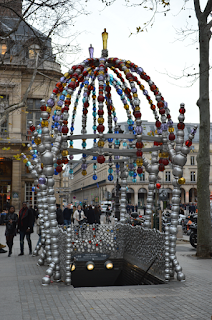 The evening’s entertainment was at Ste. Chappelle, the chapel built by Louis IX to house the Crown of thorns, which he had bought for a sum that excedeed the cost of the chapel that took thirteen years to build. If you attended St. John’s UMC on the first Sunday of advent, you may recognize this panoramic view of its vault: