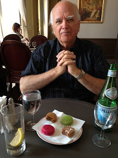 With this kind of acreage inside and out to cover, one works up an appetite. Fortunately, there are solutions to that problem. Our choice was to take advantage of a surprise discovery. Angelina’s has a cafe in the chateau. Angelina’s has been on Anita’s list of “treat” stops since we started planning this trip, for no reason other than the hot chocolate. After some quiche and salad, we settled in to hot chocolate l’africain and macarons. Macarons (not to be confused with macaroons, the coconut cookies you may be familiar with) are little sandwiches of meringue wrapping a delicate creme filling.